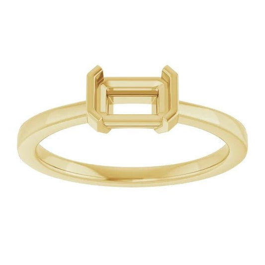 Bezel Set Emerald Cut Ring Mounting: Sterling Silver or 14k Gold