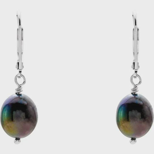 Sterling Silver Cultured Black Freshwater Pearl Earrings