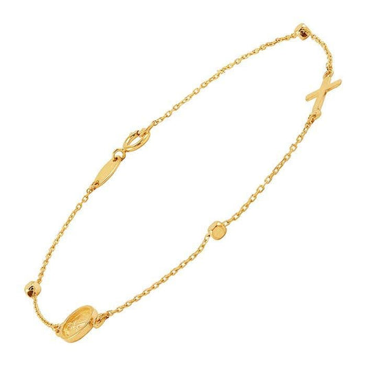 14K Yellow Gold Religious Medal Station Bracelet, 7-1/4"
