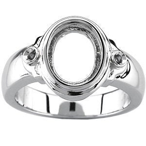 10x8 mm Oval Bezel-Set Accented Ring Mounting in Sterling Silver or 14k Gold