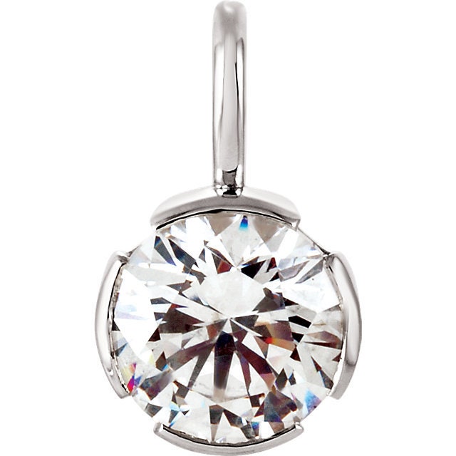 Choose 5, 6, or 7 mm bezel setting for your pendant in solid 14k yellow or white gold.