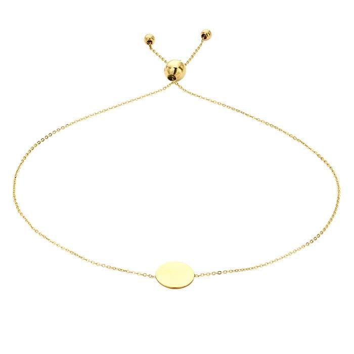 14K Yellow Gold Bracelet with Round Plaque, Adjustable