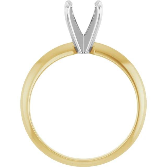 14K Yellow/White 6-6.6 mm Round 4-Prong Light Solitaire Ring Mounting, pre-notched