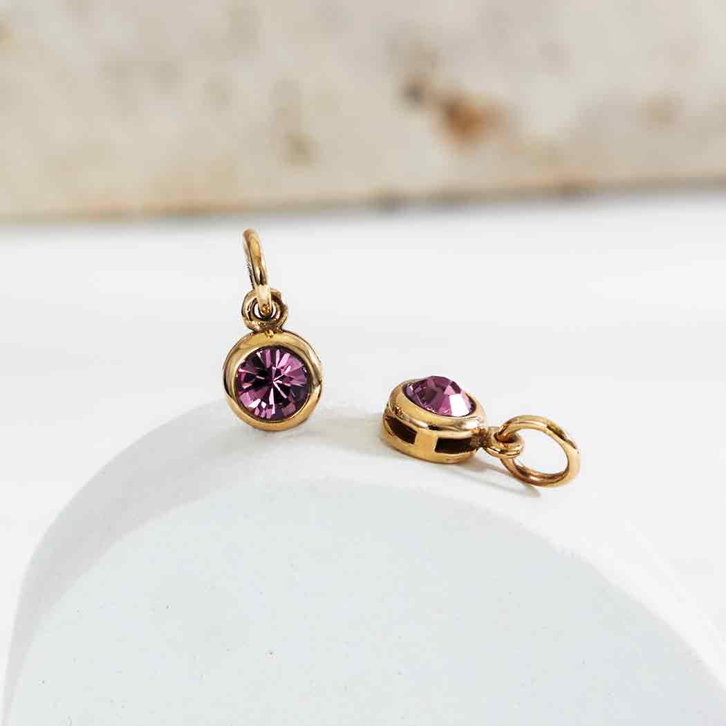 This bronze birthstone charm features an alexandrite colored crystal. Birthstone charms are great for celebrating loved ones. These charms are perfect for new mommies, grandmas, sisters, or any special person in your life!