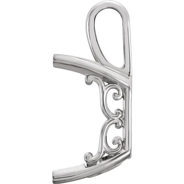 This Emerald 4-Prong Vintage-Inspired Scroll Pendant Mounting is available in 14k yellow gold, white gold, Sterling Silver will be a custom setting and may take approx. 2 weeks for completion.