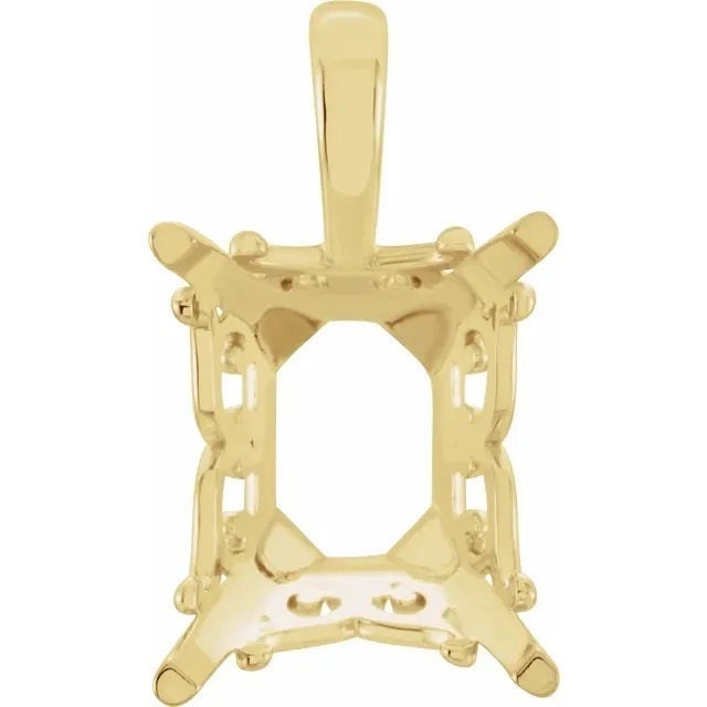 Emerald Cut 14k Gold Scroll Pendant Mounting: Vintage Inspired
