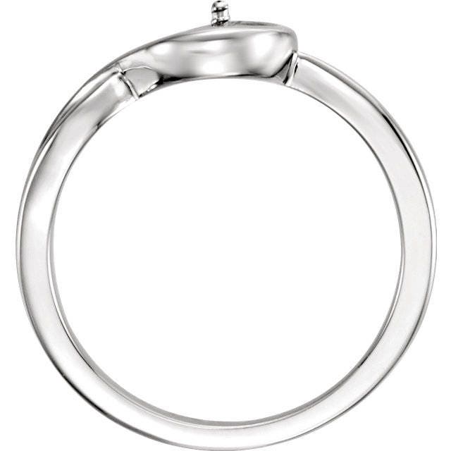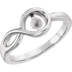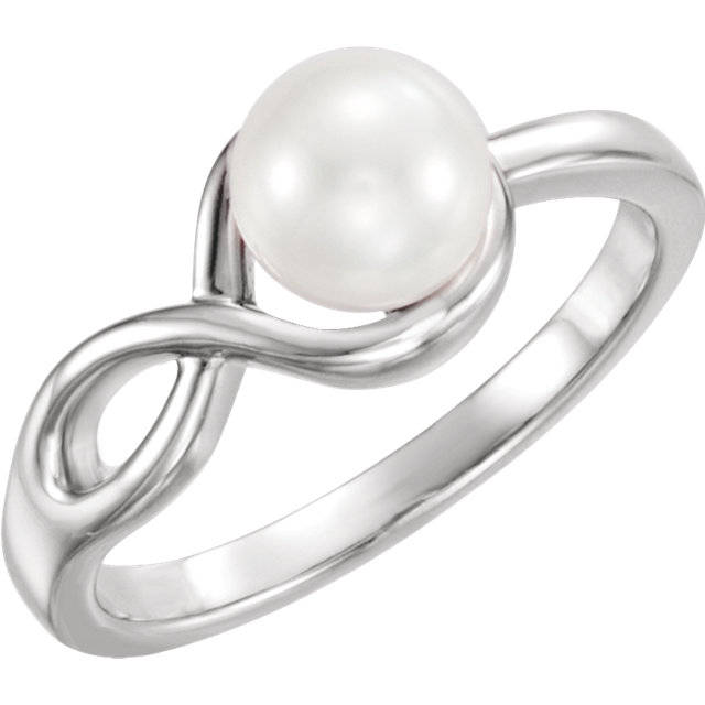 This infinity style pearl ring is available in 925 Sterling Silver, 14k White Gold, or 14k Yellow Gold.