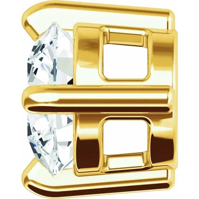 Set your gemstone in this simply elegant slide pendant. The four prongs make it easy to secure your stone. It is available in Sterling Silver and 14k yellow or white gold, and there are 8 setting sizes available.