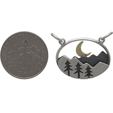 Silver Oval Mountain Pendant with Trees and Moon 18x20mm