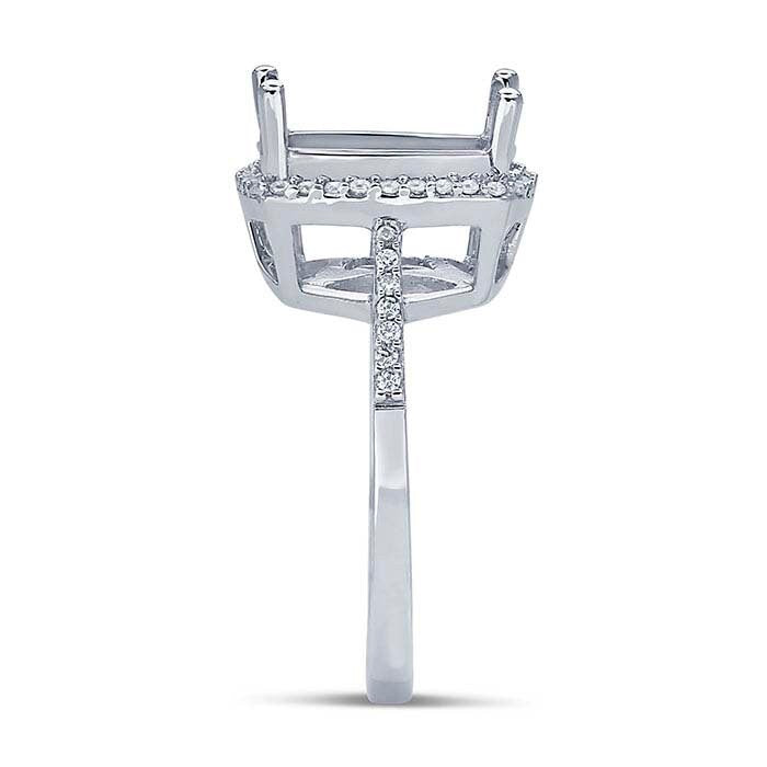 Sterling Silver 12mm Cushion Semi-Mount Halo Engagement Ring Mountings