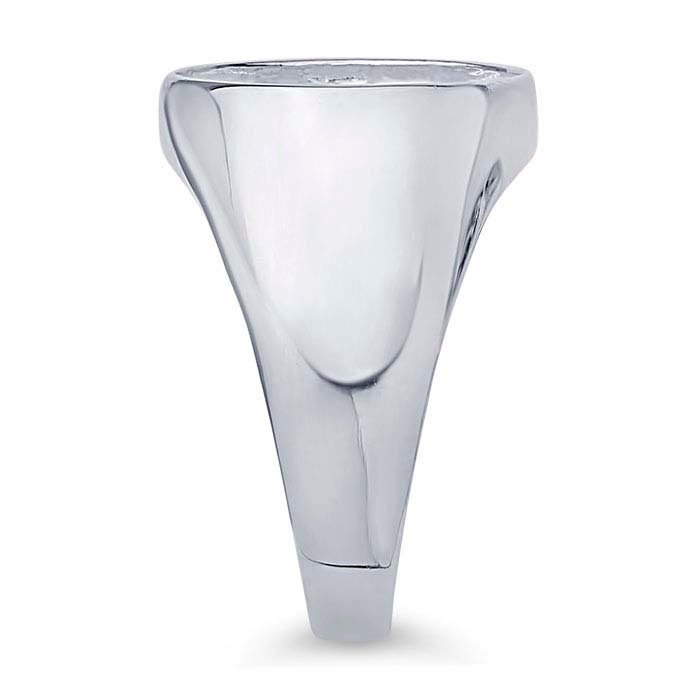 This sterling silver ring features a smooth, domed shank rising to the open bezel mounting; the ring has a bright finish. Set the ring with one 16 x 14mm oval cabochon using traditional setting techniques. Place your stone in the bezel and push the walls inward over the stone, holding it in place. For added security, if desired, place a drop or two of jeweler's epoxy along the rim before placing the stone.