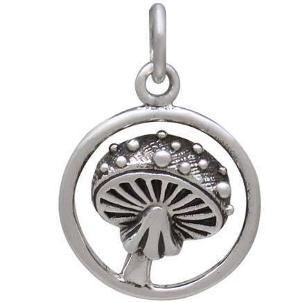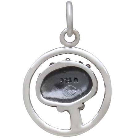 Sterling Silver Agaric Mushroom Charm in Circle 18x13mm