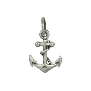 Sterling Silver Anchor Charm. Go nautical! This wonderfully detailed anchor has rope detailing that wraps around the center. Show your love for sailing with this beautiful nautical charm. Or, take a dive into our ocean collection