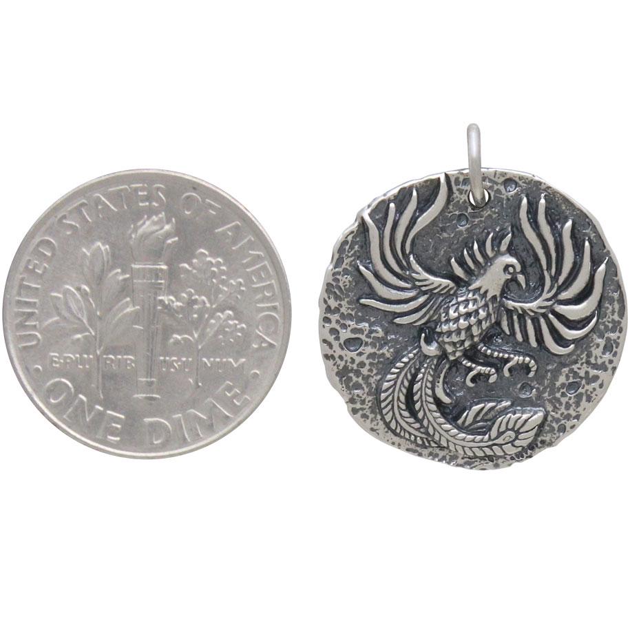 Sterling Silver Ancient Coin Charm -Phoenix 22x20mm