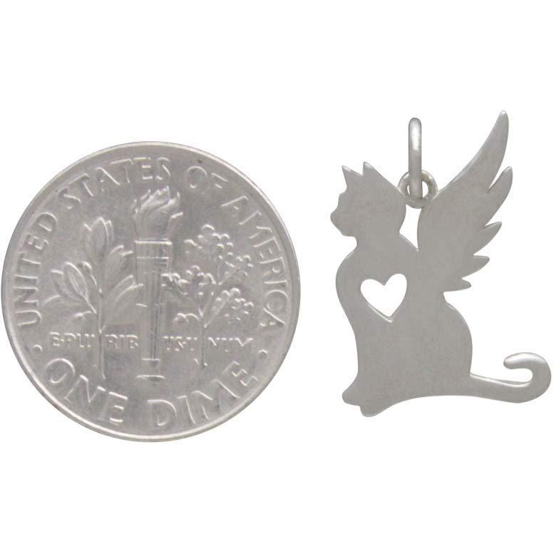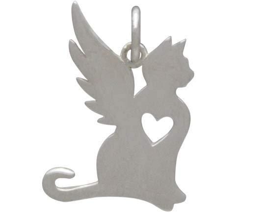 Honor your cherished memories - all the fun you had, every celebration upon your return - all the love you hold in your heart for your furry friend with this sterling silver angel cat charm. Create a sweet charm necklace with this angel cat charm - featuring a mighty heart and angel wings - and hold your memories close to your heart everyday.