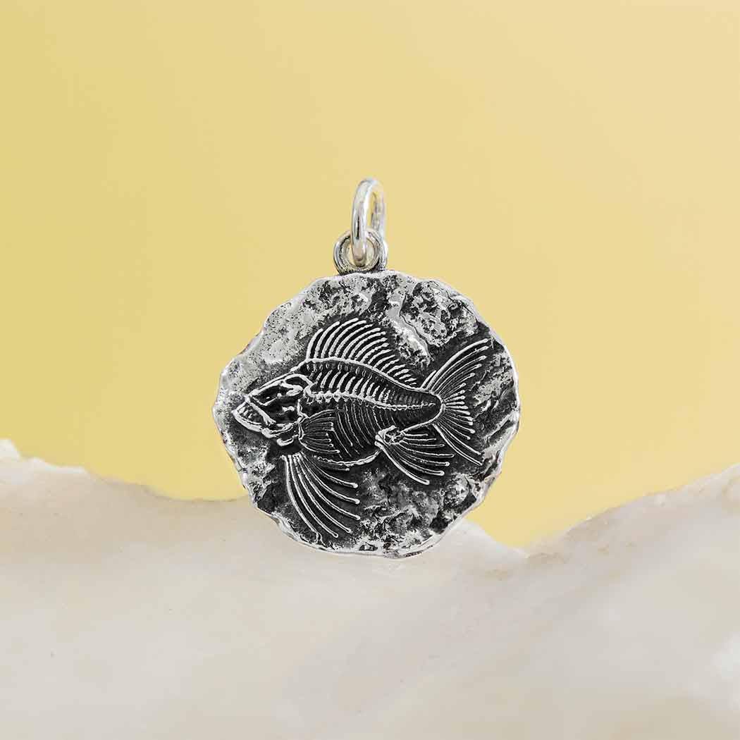 Sterling Silver Angler Fish Fossil Pendant 21x16mm