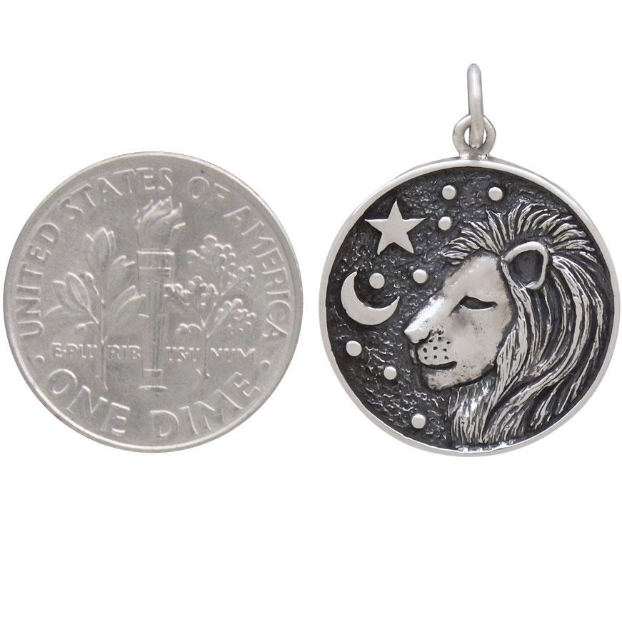 Sterling Silver Astrology Leo Pendant. Celebrate fiery Leos with this coin charm showcasing the brave Lion. The reverse side denotes their ruling celestial body: the Sun.