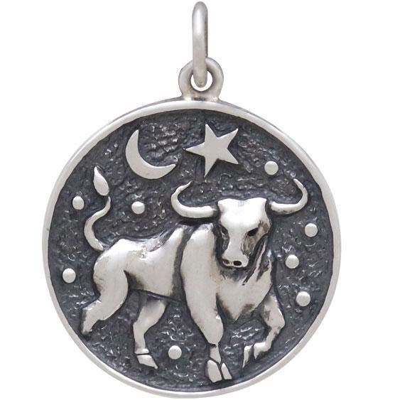 Sterling Silver Astrology Taurus Pendant. Celebrate the steadfast Taurus with this coin charm showcasing the spirited Bull. The reverse side denotes Taurus' ruling planet: Venus.
