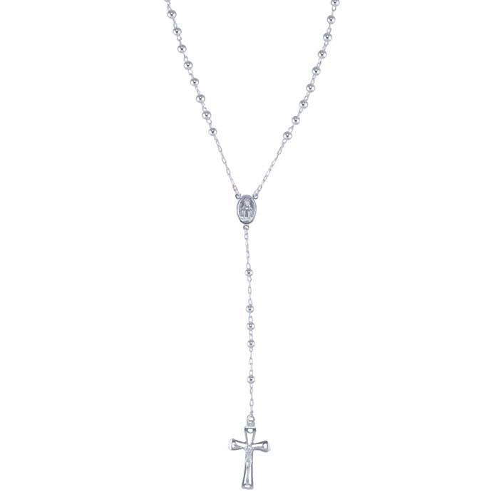 Sterling Silver Beaded Rosary Chain Necklace with Cross