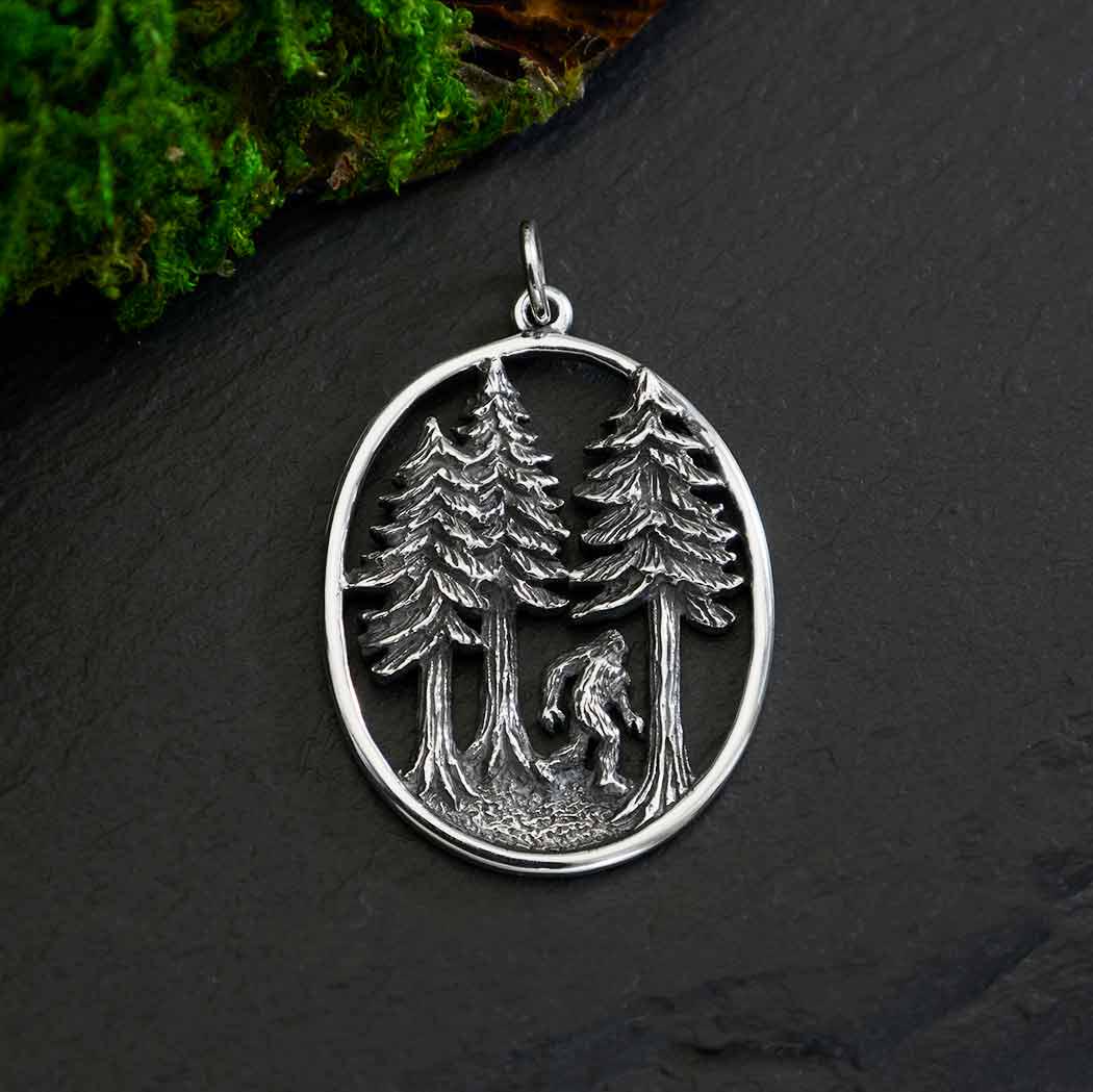 Burly and elusive, this sterling silver sasquatch in the forest pendant is an expression of our wild side, and perhaps even our distant past. Whether Bigfoot, Yeti, or Sasquatch, these creatures appear in many places, times, and continents (as myth or reality, you decide).