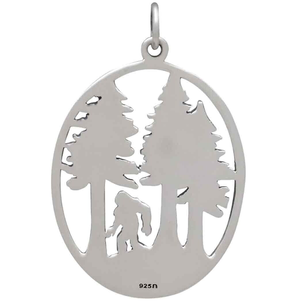 Sterling Silver Bigfoot in the Forest Pendant 33x22mm
