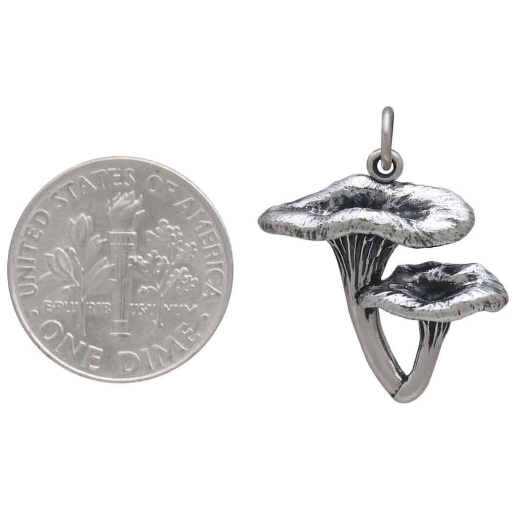 Sterling Silver Chanterelle Mushroom Pendant 24x20mm