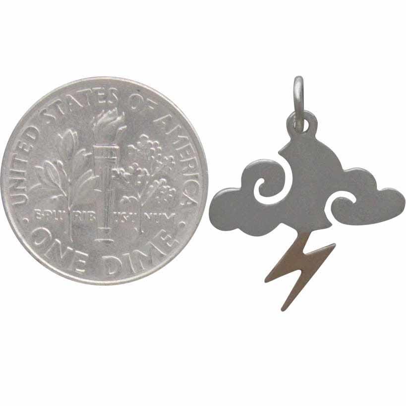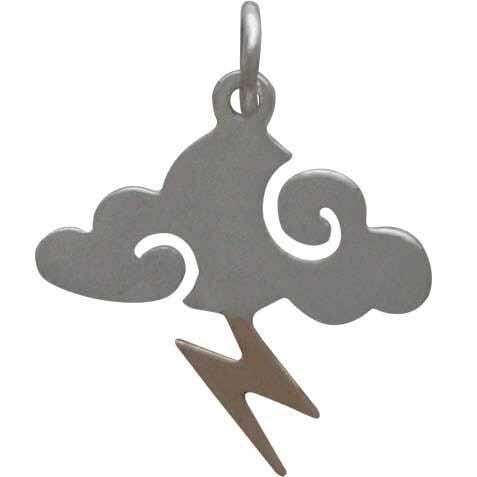 This sterling silver storm cloud charm features a flash of golden bronze lightning to add a bit of electricity to your designs. Complete the look by stringing this pendant onto a Finished Chain or mix it with other charms from our Star & Moon collection. You will be amazed by the nearly seamless transition of metals within this piece, truly a fine piece of craftsmanship.
