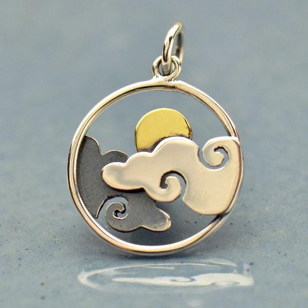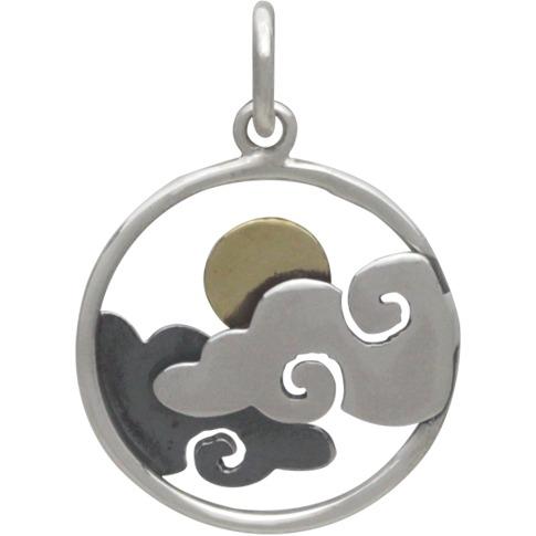 Sterling Silver Cloud Charm with Bronze Sun 21x15mm