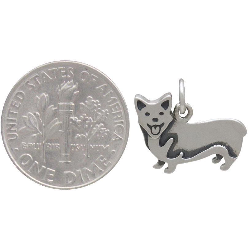 Sterling silver Corgi dog charm. She's low. She's long, and oh-so lovable! With Corgis, you get big dog traits, like athleticism & fearlessness, in a little dog size. Playful and protective, Corgis are the perfect family dog.