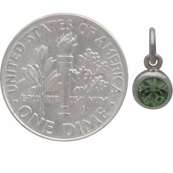 This sterling silver birthstone charm features a peridot colored crystal. Birthstone charms are great for celebrating loved ones. These charms are perfect for new mommies, grandmas, sisters, or any special person in your life!