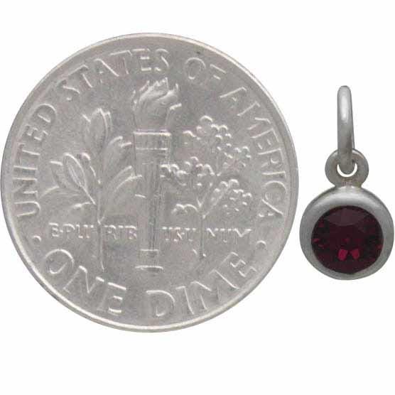 This sterling silver birthstone charm features a ruby colored crystal. Birthstone charms are great for celebrating loved ones. These charms are perfect for new mommies, grandmas, sisters, or any special person in your life!