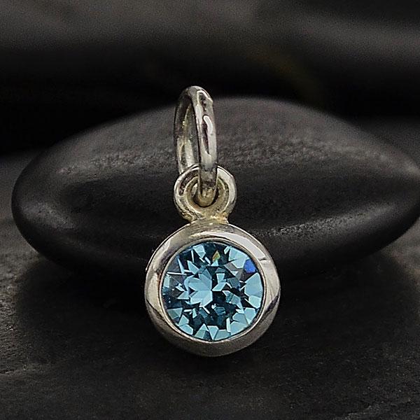 This sterling silver birthstone charm features an aquamarine colored crystal. Birthstone charms are great for celebrating loved ones. These charms are perfect for new mommies, grandmas, sisters, or any special person in your life!
