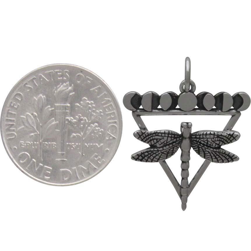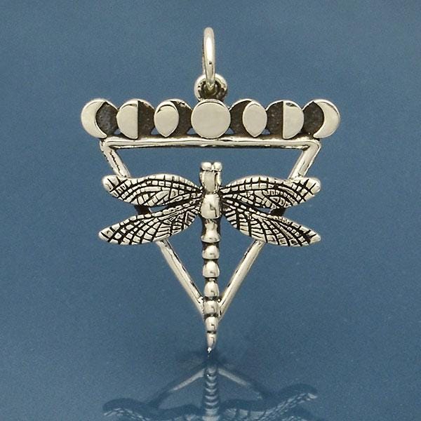 The details on this sterling silver dragonfly charm with moon phases are striking, and by layering the dragonfly on an inverted triangle you get the sense it's rising up to give thanks to the moon. Because the life of the dragonfly is dominated by wind and water, much of their life cycle is determined by the phase of the moon, from egg laying to spring tide's effect on its food source. In one charm, you get two powerful symbols of transformation and change.