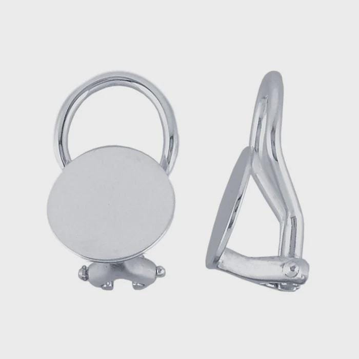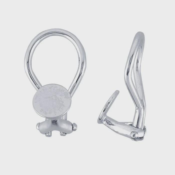 This sterling silver ear clip comes assembled and features a 6mm pad that is ideal for gluing findings, mountings, or other decorative findings. Clip earrings are ideal for customers without pierced ears while providing maximum adjustability for comfort and fit. To adjust fit, use pliers to gently bend the strip of metal between the clip and the front design to increase or decrease the space for the ear lobe.