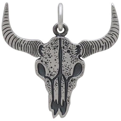 This sterling silver flat cow skull pendant honors one the most gentle creatures on earth. Generous with their life force, cows are associated with Mother Earth, fertility, and provision. Wear this superbly detailed cow skull in times when you need a little extra feminine love.