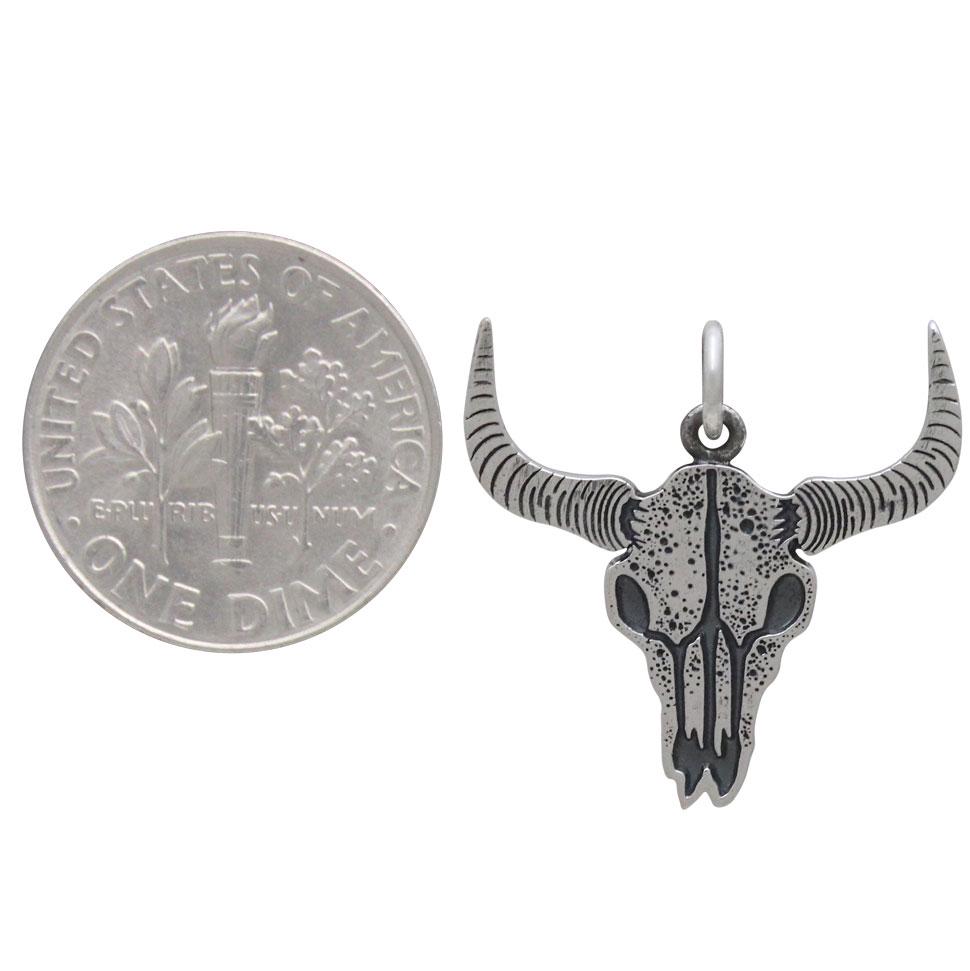 Sterling Silver Flat Cow Skull Pendant 21x20mm