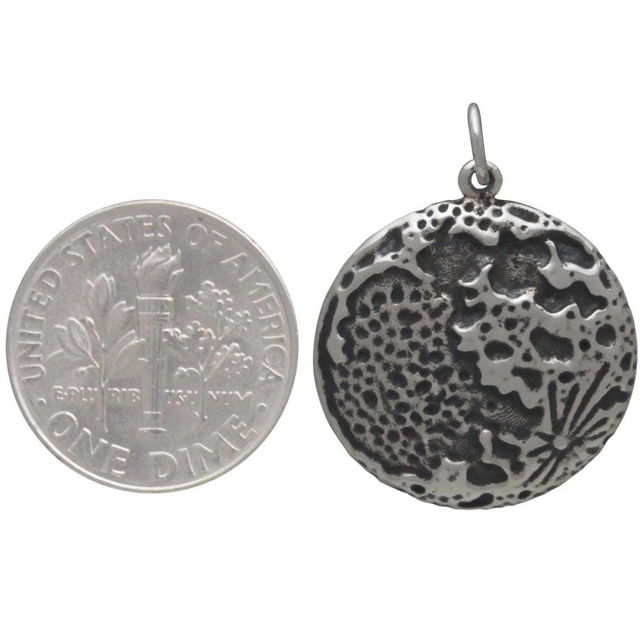 Bask in the light of the full moon! This pendant is highly textured, just like the surface of the moon with its valleys and craters. A slightly concave surface gives this piece dimension, and it is hollowed out in the back to reduce the weight. The Full Moon casts an exuberant vibe, making it a great time to be outgoing, try something new or throw a party. It opens the door for meaningful people to come into your life, but can also be intense. For more cosmic inspiration, take a peek at more of our Celestial Collection!
