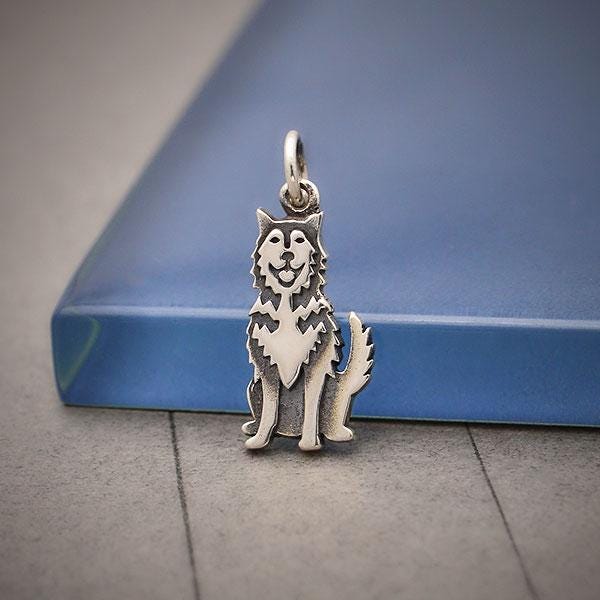 This layered, sterling silver husky dog charm showcases the breed's strength, and thick coat with distinctive markings. Bred for great endurance, huskies are famous for hauling sleds over great expanses of snow and ice. As born pack dogs, huskies thoroughly enjoy family life. In fact, their innate friendliness make them rather indifferent watchdogs!