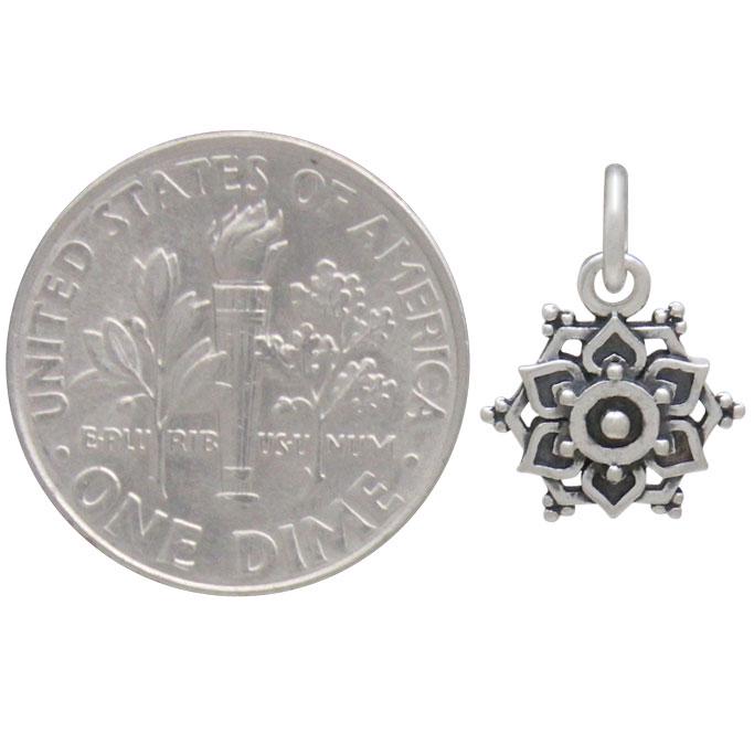 Sterling Silver Lotus Mandala Charm with Granulation 15x10mm