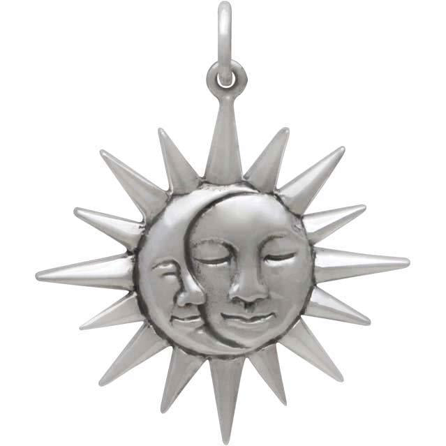 Placing a crescent moon and sun inside a full circle imbues this sterling silver sun & moon pendant with deep meaning. The sun has long been associated with masculine strength, light, truth, knowledge, and life itself; while the moon, associated with feminine strength, has long been a symbol of death and rebirth as it waxes and wanes. Since the dawn of time, life has been regarded in these terms - day and night, masculine and feminine, ying and yang, life and death.