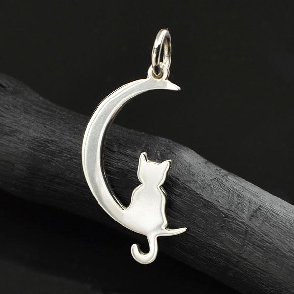 Sterling Silver Moon Charm with Kitty 25x11mm