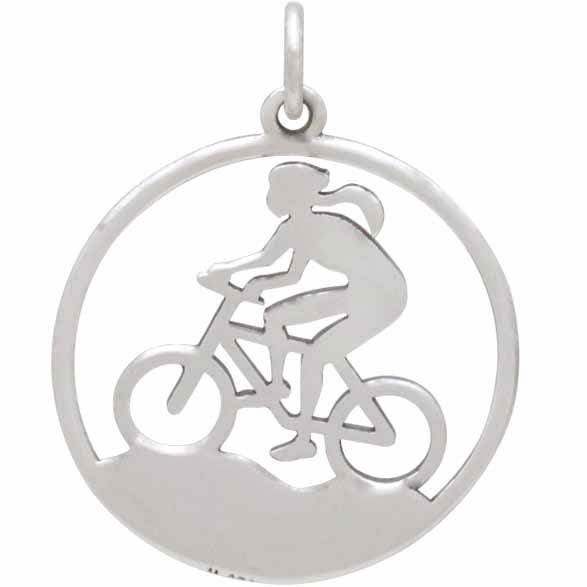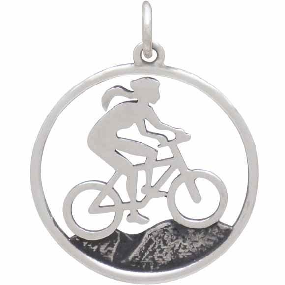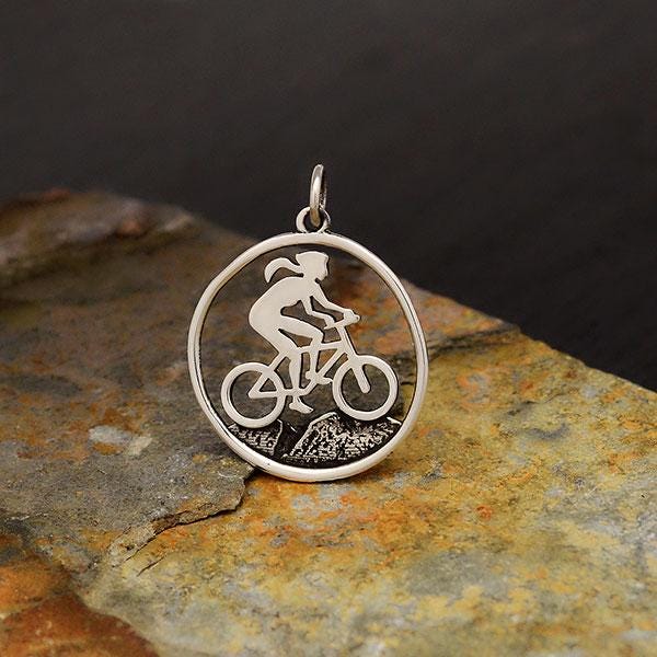 Make jewelry that says - Let's get up and go - with this sterling silver mountain biker girl charm. This mountainer biker is full of spunk and won't stop 'til she reaches the top! Makes the perfect gift for friends in love with biking.