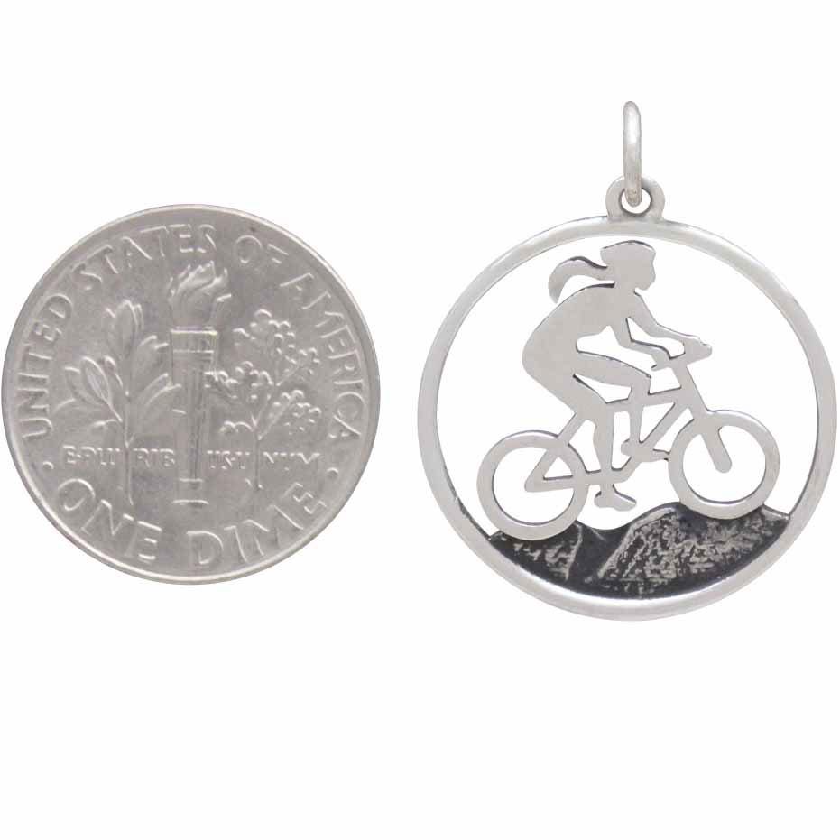 Sterling Silver Mountain Biker Girl Charm 26x20mm