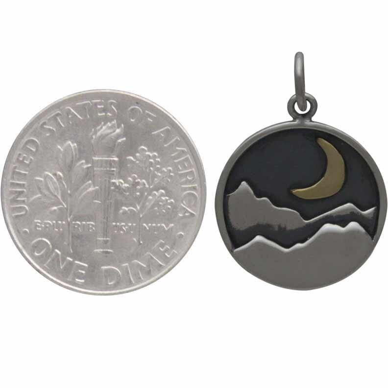 Sterling Silver Mountain Charm with Bronze Crescent 21x15mm