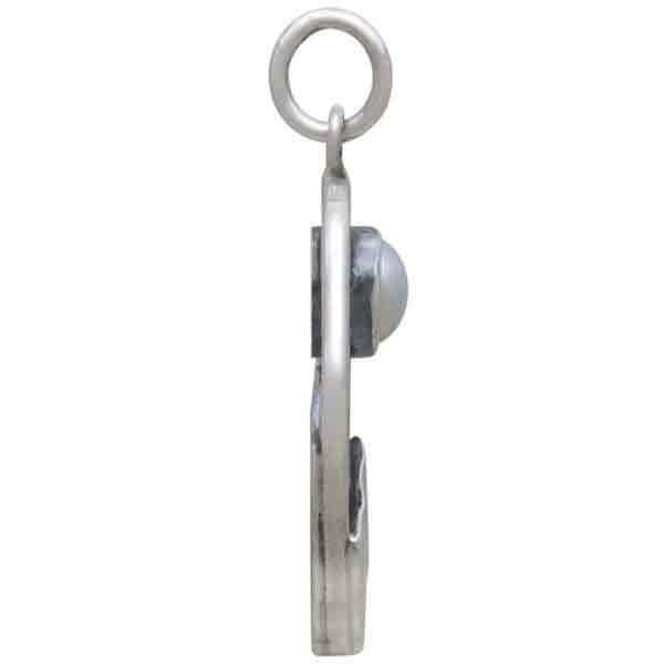 Sterling Silver Mountain Charm with Pearl Moon 24x18mm