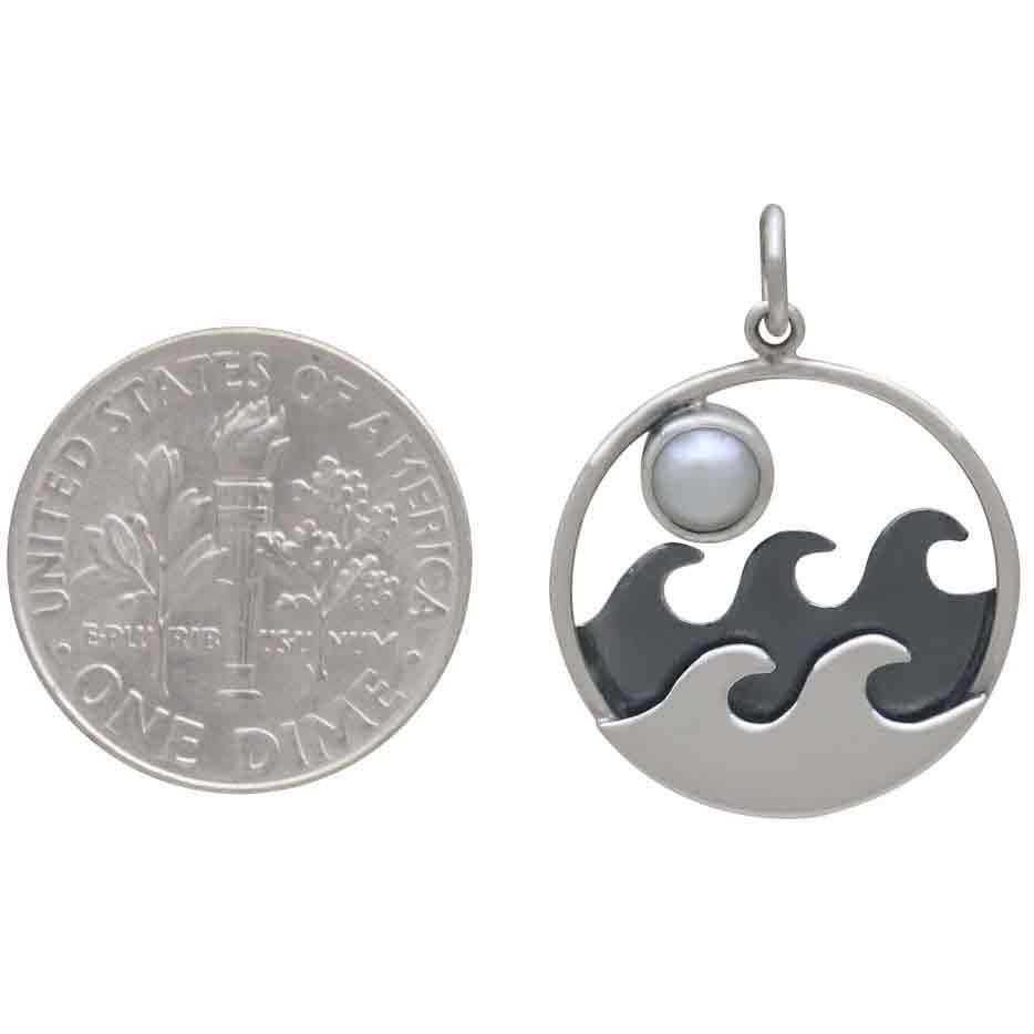 Sterling Silver Ocean Pendant with Pearl Moon 24x18mm