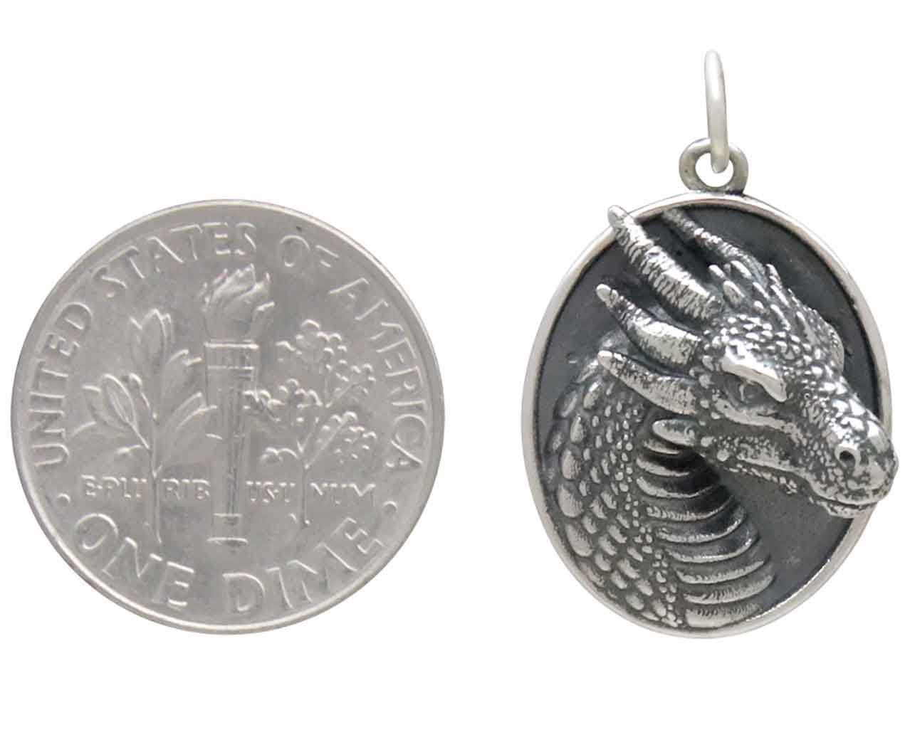 Sterling Silver Oval Dragon Pendant 25x16mm