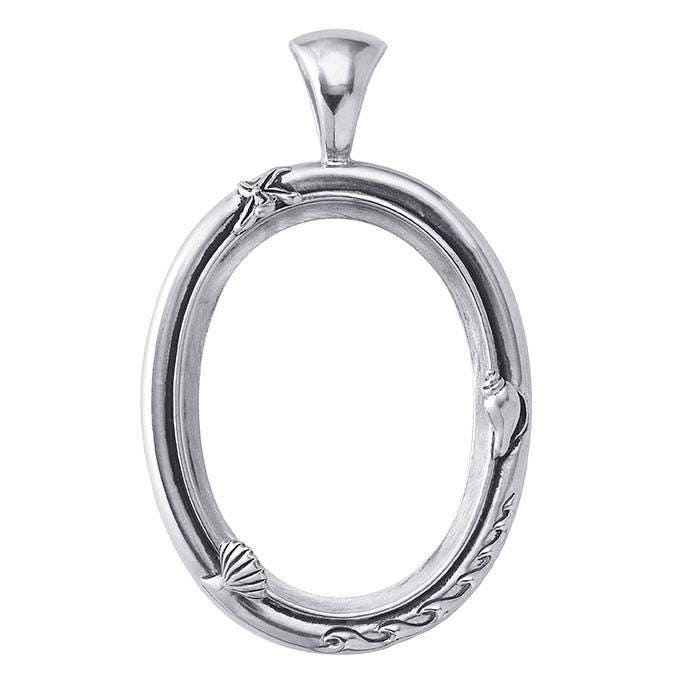 Sterling Silver Seaside Oval Cameo or Cabochon Pendant Mounting