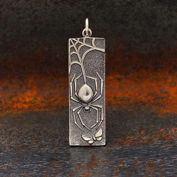 Market these sterling silver spider pendants on rectangle to customers who draw on the energy of spiders. Spiders are eerie creatures considered to wield supernatural qualities. Their ability to weave intricate webs proves they have patience, strength, and a touch of magic. Though some may be afraid, these interesting insects would rather keep to themselves and create mini works of art.