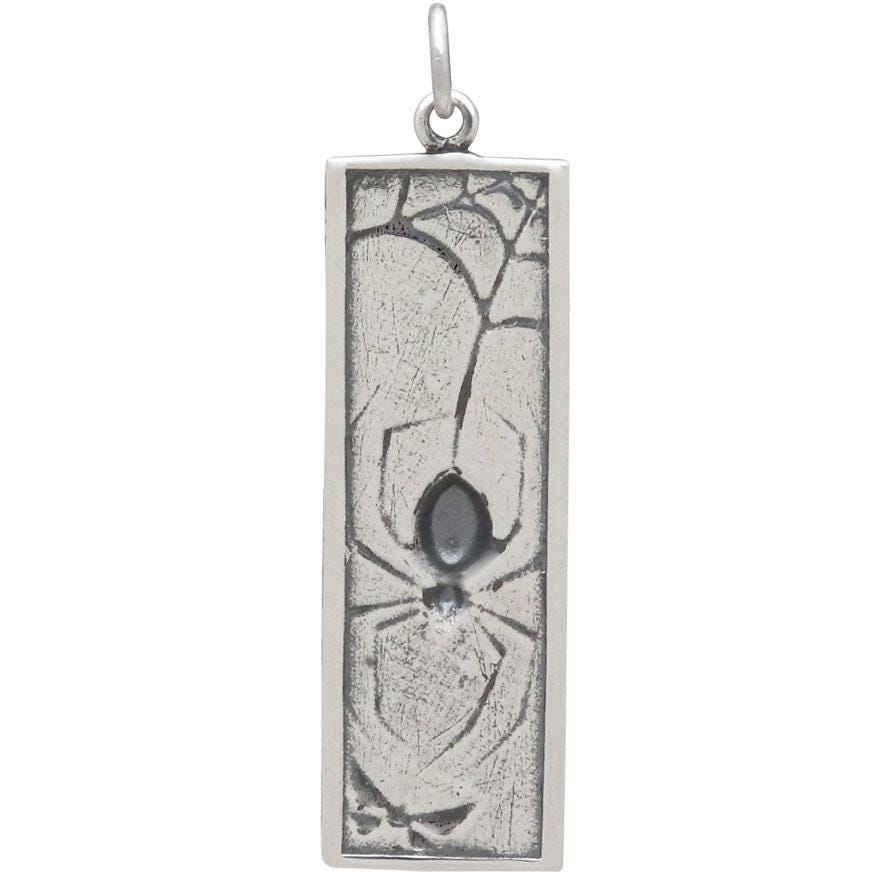 Sterling Silver Spider Pendant on Rectangle 37x10mm